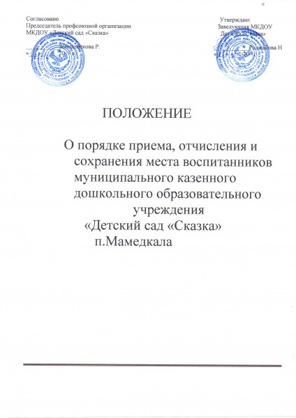 положение о приеме и отчисление детей МБДОУ Документ подписан электронной подписью Серийный номер 603332450510203670830559428146817986133868575779 Заведующий Раджабова Наиля Магомедсалиховна Дата подписания документа 29.06.2021 11:19:41 (скачать)