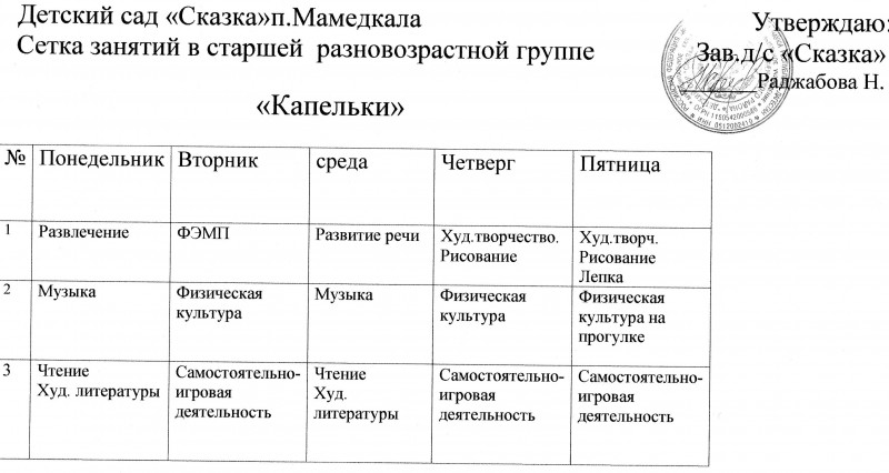 Неделя старшая группа Документ подписан электронной подписью Серийный номер 603332450510203670830559428146817986133868575779 Заведующий Раджабова Наиля Магомедсалиховна Дата подписания документа 02.04.2021 16:11:41 (скачать)